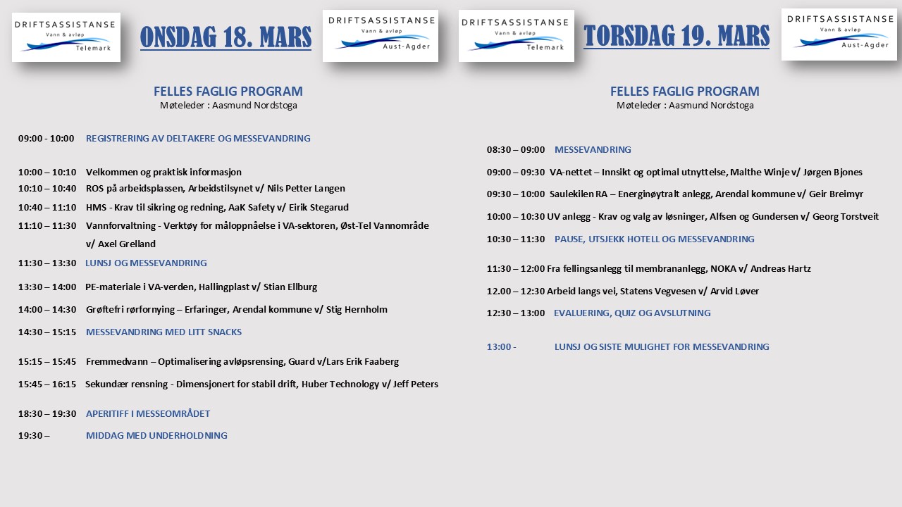 Påmelding er kun for deltakerkommuner i Driftsassistansen i Telemark og Driftsassistansen i Aust-Agder, og er sendt ut på epost. Ta kontakt med driftsassistansen@sweco.no dersom du ikke har fått invitasjon.